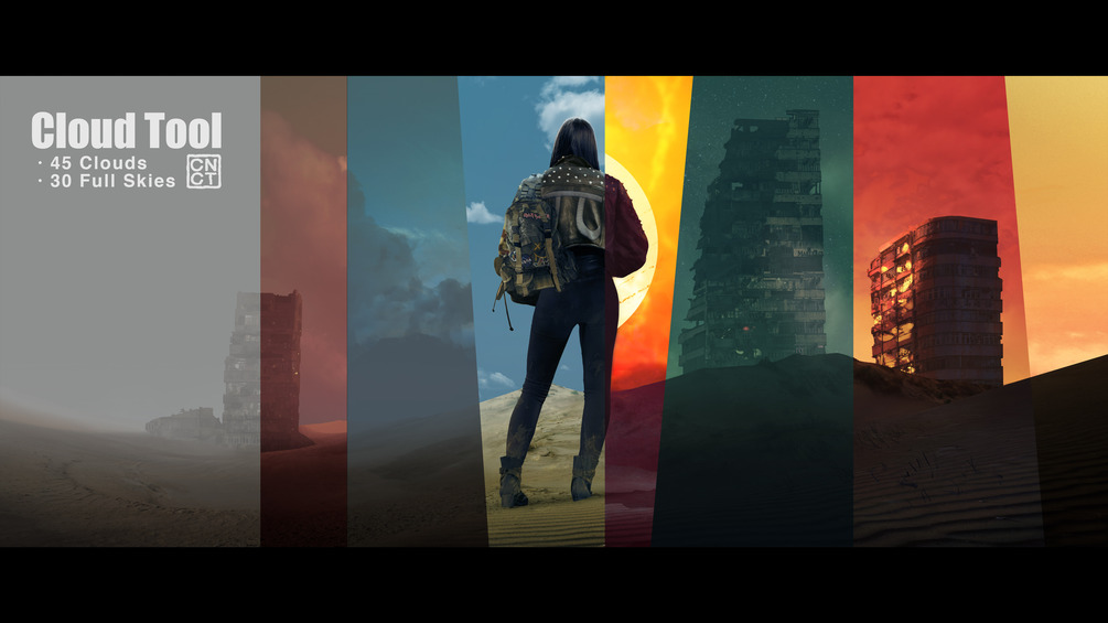 Photo library of clouds and full skies with transparency ready to drop on your 2D software (Photoshop, Krita, etc)