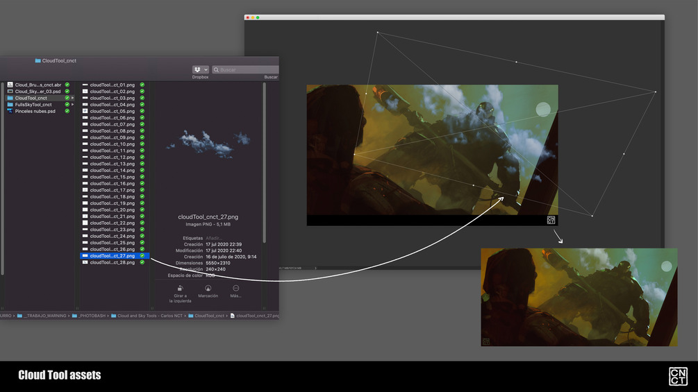Photo library of clouds and full skies with transparency ready to drop on your 2D software (Photoshop, Krita, etc)